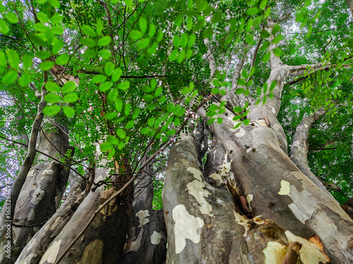 © MD Wahid Abdullah, Fototapeta premium A huge tree is stuck by its roots in the middle of a park in India.