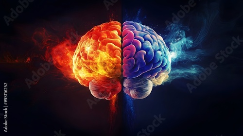 Fototapeta premium A Human Brain Divided by Fire and Water