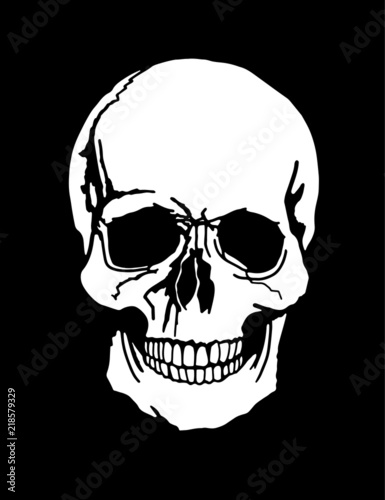 © itsmesimon, Fototapeta premium A human skull illustration white on a black background