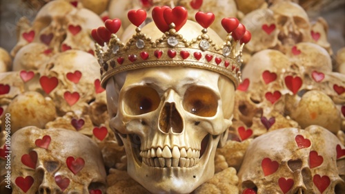 Naklejka premium A Human Skull Wearing a Crown of Hearts