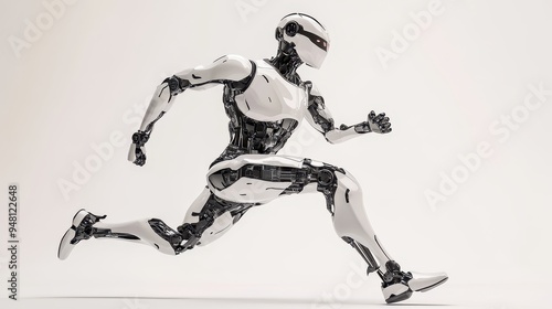 Obraz premium A humanoid AI robot energetically sprints forward, illustrating impressive...