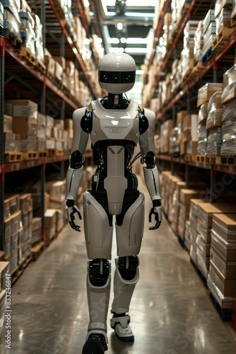 © Media Srock, Obraz premium A humanoid robot navigates a storage facility