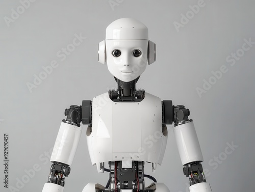 © Ai-Pixel, Naklejka premium A humanoid robot with a sleek design, showcasing advanced robotics technology in a minimalist studio setting.