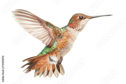 Fototapeta premium A hummingbird captured in mid-air, with its wings spread. Perfect for nature...