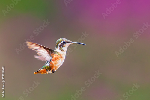 © GuillermoOssa, Fototapeta premium a hummingbird flies near a flower to feed