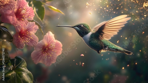© Fidan, Naklejka premium A hummingbird flying close to a flower