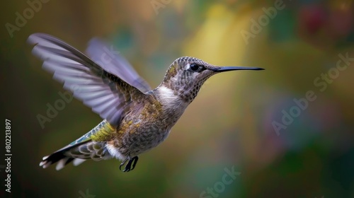 © DS Showcase, Naklejka premium A hummingbird flying through the air with its wings spread wide