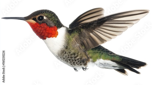Fototapeta premium A hummingbird in flight, showcasing vibrant colors and intricate feather...