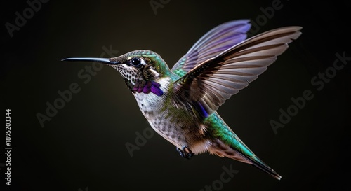 © MarufIslam, Fototapeta premium A hummingbird in flight with vibrant green and purple feathers