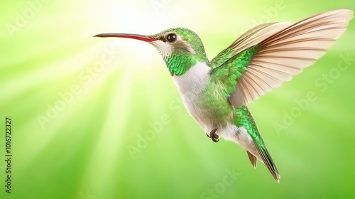 © Alice a., Obraz premium A hummingbird is flying in the air