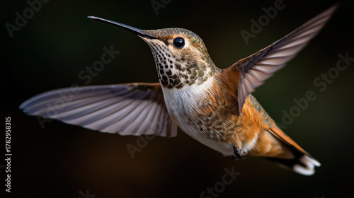 © PACHARA, Fototapeta premium A hummingbird is flying in the air
