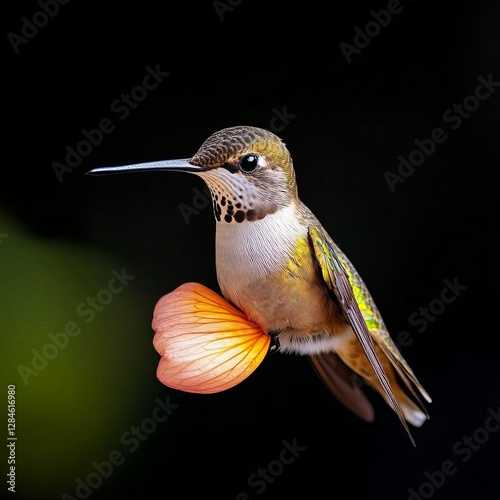 © Photography09, Fototapeta premium A hummingbird resting on a softly swinging flower petal