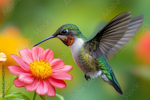 Fototapeta premium A Hummingbird's Flight Amongst Blooming Petals