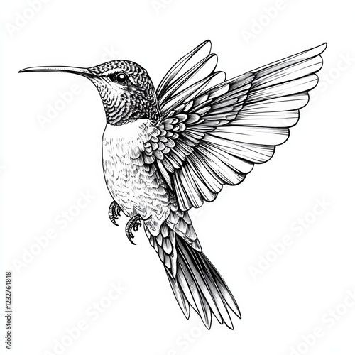 © Diavolorosso, Obraz premium A hummingbird tattoo design, black and white ink on paper