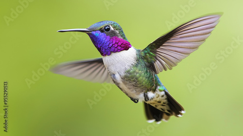 © alfa27, Fototapeta premium A hummingbird with a blue and purple head and wings