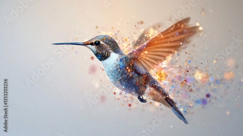 © THESUN, Fototapeta premium a hummingbird with colorful wings spread.