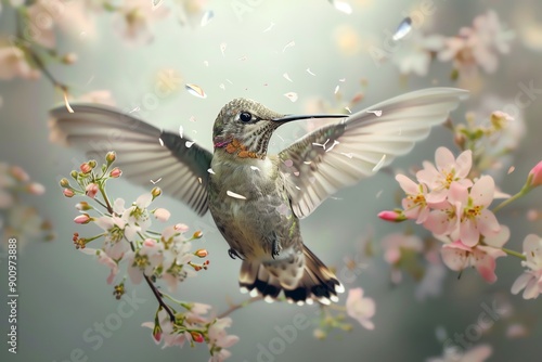 Fototapeta premium A hummingbird with flowers blooming in its wings.