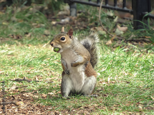 © alzay, Obraz premium A humorous shot of a cute Grey Squirrel (Sciurus carolinensis) with an acorn in its mouth