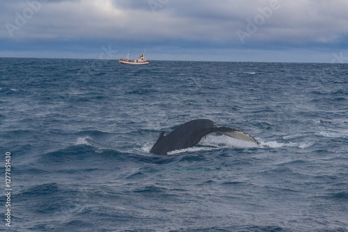 © Zimu, Fototapeta premium A humpback whale at Husavik bay, Iceland, winter time.