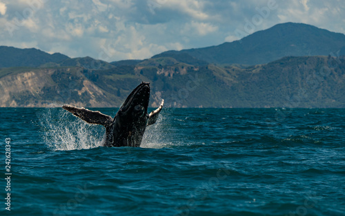 Obraz premium A Humpback Whale Joyfully Breaches in New Zealand