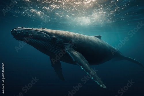 Naklejka premium A Humpback Whale's Journey Beneath the Surface