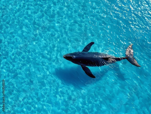 Fototapeta premium A humpback whale swimming in the ocean from above