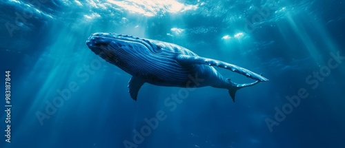 Obraz premium A humpback whale swims beneath the ocean's deep, blue surface