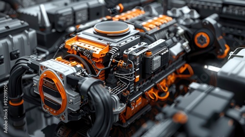Fototapeta premium A hybrid engine's inverter and power electronics, illustrating the advanced...