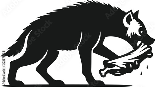 Obraz premium A hyena biting onto a piece of meat and tugging open vector