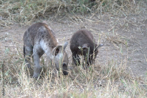 © Davide Antoniani, Naklejka premium A hyena cub playing with its mother