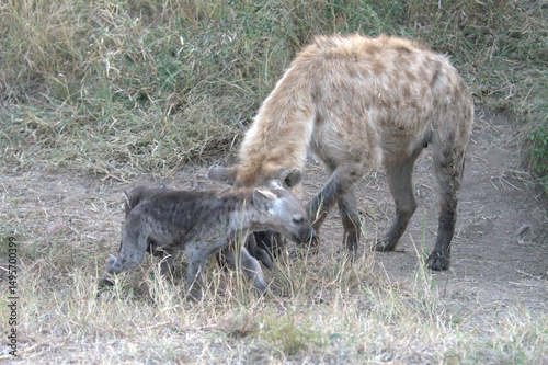 © Davide Antoniani, Fototapeta premium A hyena cub playing with its mother
