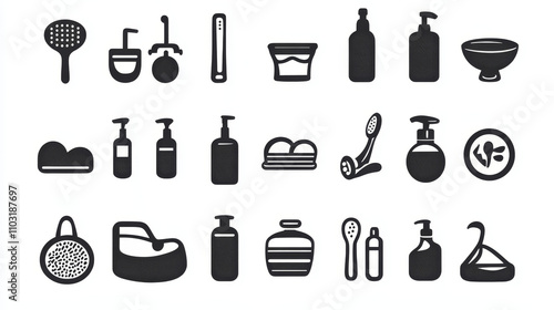 Fototapeta premium A hygiene icon set typically includes various symbols representing cleanliness and hygiene-related activities or products.