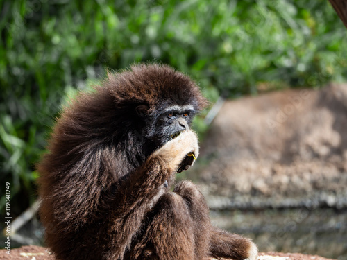 Obraz premium a Hylobates lar brown seated