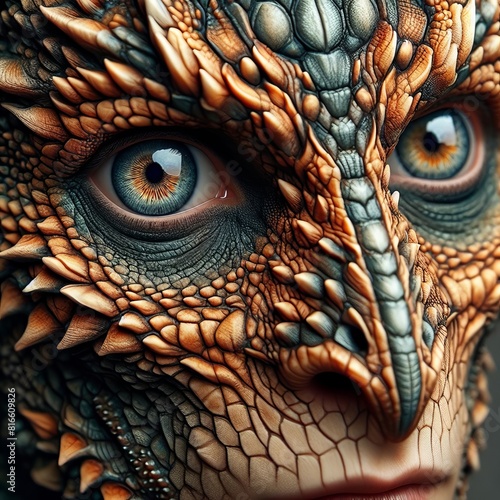 Fototapeta premium A hyper-realistic close-up of a fantastical reptilian creature with intricate...