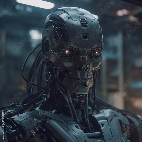 Fototapeta premium A.I Artificial Intelligence Humanoid Robot created by Generative AI