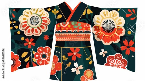 Fototapeta premium A icon illustration of a kimono, clothing item, traditional style, vibrant patterns, isolated on white background
