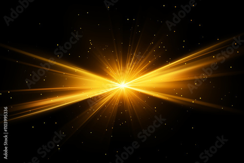 Fototapeta premium A illustration of a yellow neon spotlight emitting radiant spark effects on dark background