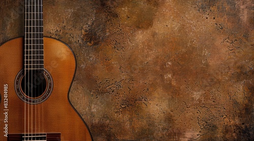 Obraz premium a image of a guitar sitting against a wall with a grunge background