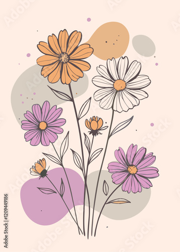 © Pixel Art, Naklejka premium A inspired wedding invitation with daisies plants vector