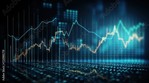 © Phoophinyo, Naklejka premium A Investment finance chart infographic with ,stock market business and exchange financial growth graph., photo, on a blue background.