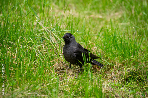 Obraz premium a jackdaw on a grass