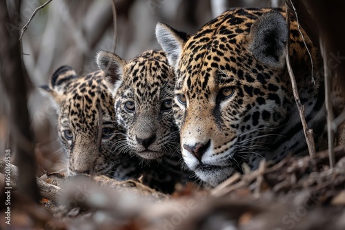 © Markus Schröder, Naklejka premium A jaguar playing with its cubs