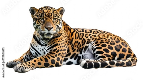 © Samady, Obraz premium A jaguar resting isolated on a transparent background.