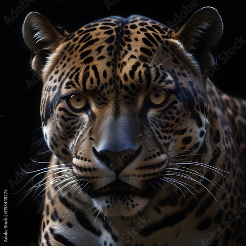 Obraz premium A jaguar with intense eyes and a fierce expression, set against a dark...