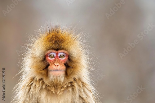 Fototapeta premium A Japanese macaque with messy hair and an exaggerated smile, looking at the...