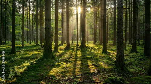 Naklejka premium A Journey into the Untamed Heart of Nature, Where Majestic Trees Stand Tall and the Spirit of the Wild Reigns