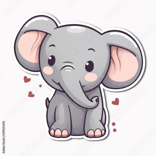 Fototapeta premium A joyful chibi Elephant sticker with a white background, baby elephant cartoon sticker, cute elephant sticker, Generative AI