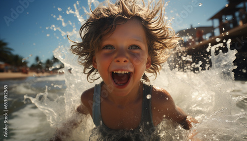 Obraz premium A joyful child splashing in the water, enjoying summer generated by AI