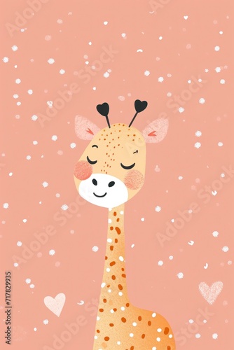 Naklejka premium A joyful giraffe with a pink hearts, spreading love and cheer.