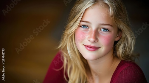 Fototapeta premium A joyful young blonde girl radiates happiness, embodying pure and carefree...